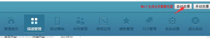 当在后台上传了产品、新闻、关于我们、联系我们等内容时,右上角会弹出自动处理或手动处理的按钮,点击自动处理,然后点击执行缓存操作,此时不需要生成静态页,直接刷新前台页面即可显示。