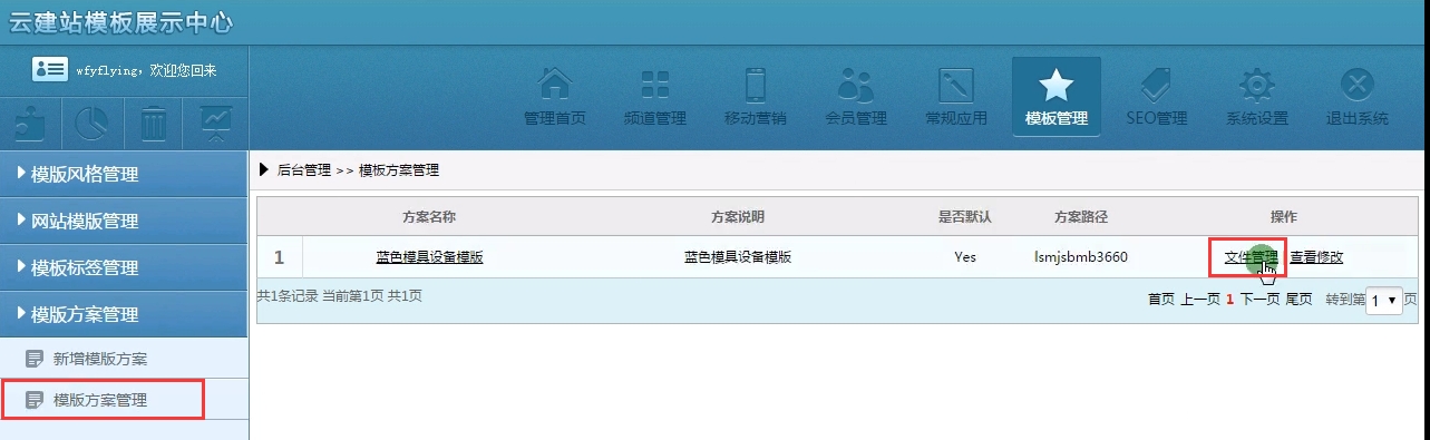6. 然后在模版方案管理当中上传js和图片文件,点击【模版方案管理】——【文件管理】