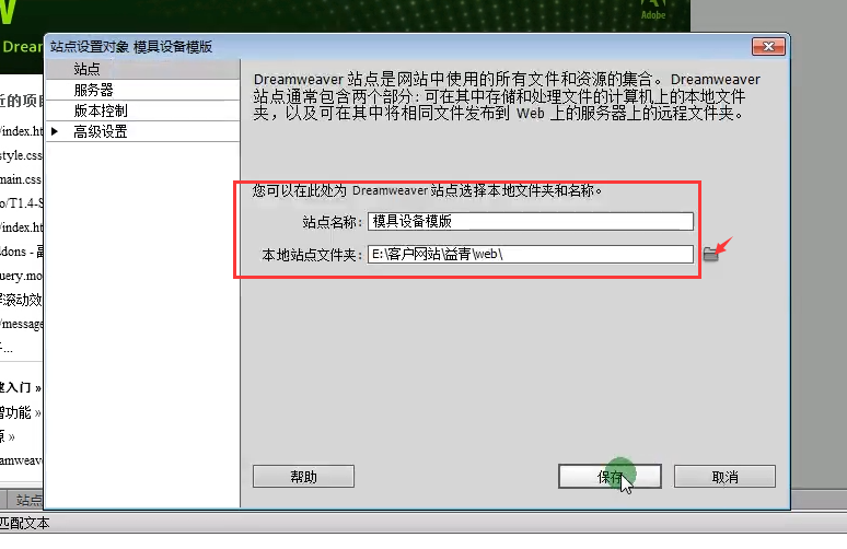 我一般都是在Dreamwear当中操作,新建站点,填写站点名称,找到模版网站所在文件夹