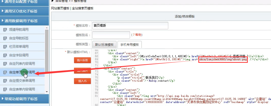 这里的<img>部分是一个地图标注,我们需要把它做成可以调用的,把红框圈出来的参数标签替换,