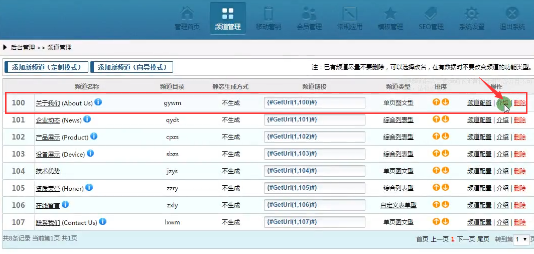 首先关于我们和About Us,用自定义字段的频道名称和频道其他名称标签替换,然后把内容介绍部分用自定单页内容调用