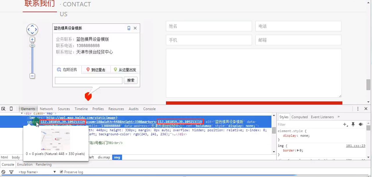 提交保存并清空缓存之后,回到前台审查元素可以发现红框圈出的位置的地图位置