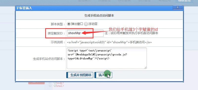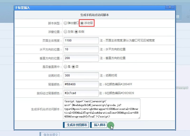 移动端二维码导航脚本除了弹出窗口,还可以是浮动层的形式,如下设置: