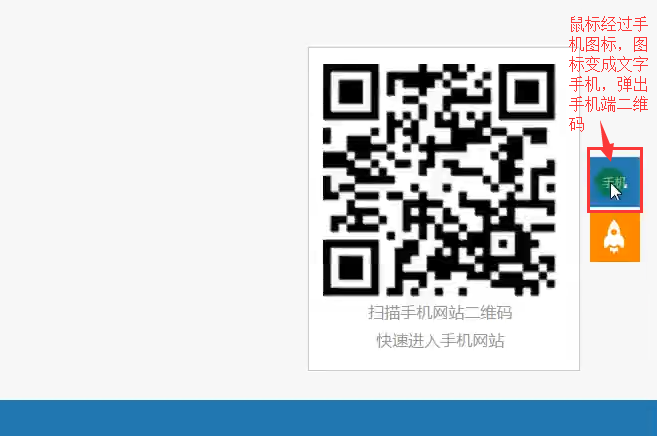 2. 我们还需要在PC端的页面有跳转到手机端的入口,如下图方式,点击手机端弹出二维码