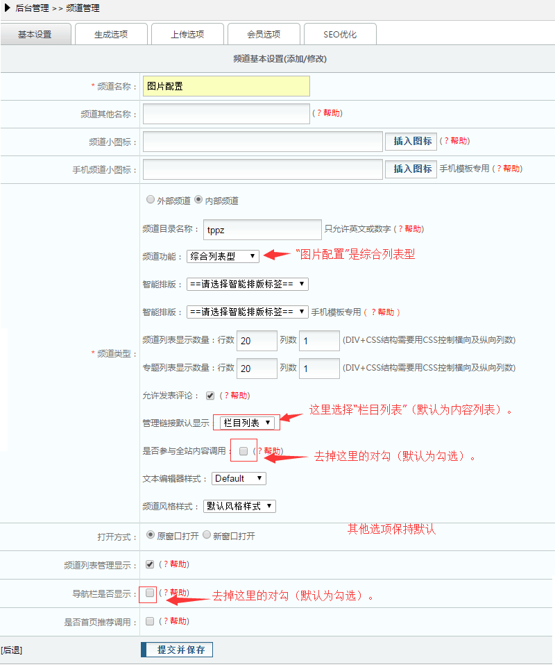 另外,需要建立频道“图片配置”,如图: