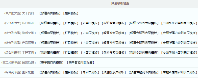 可以看到,频道专属模板分为三种类型:单页图文型、综合列表型、自定义表单型。