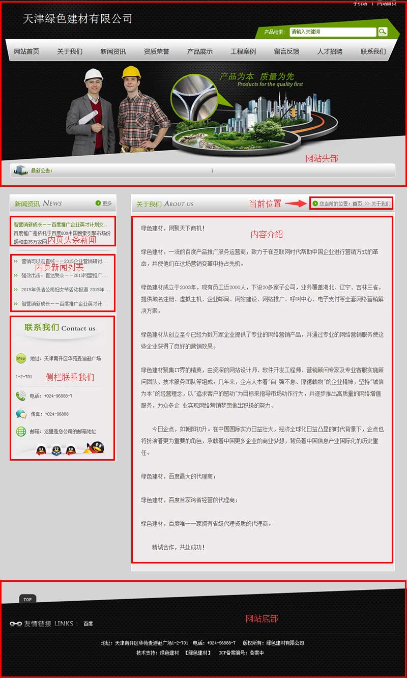 (1)单页图文型:我们以关于我们为例。首先分析页面,