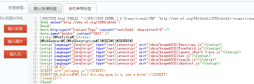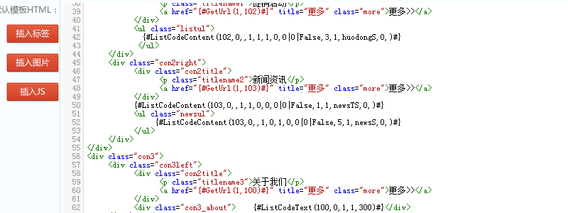 然后把公用的头部和尾部剪切出来,新建一个静态标签,取名为网站头部,然后粘贴代码