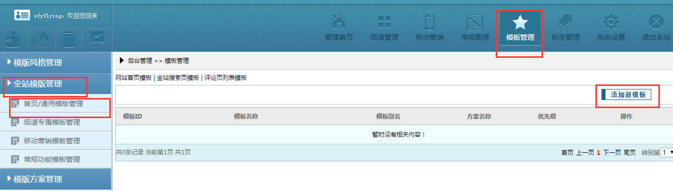 模板管理—全站模板管理—首页 / 通用模板管理—添加新模板