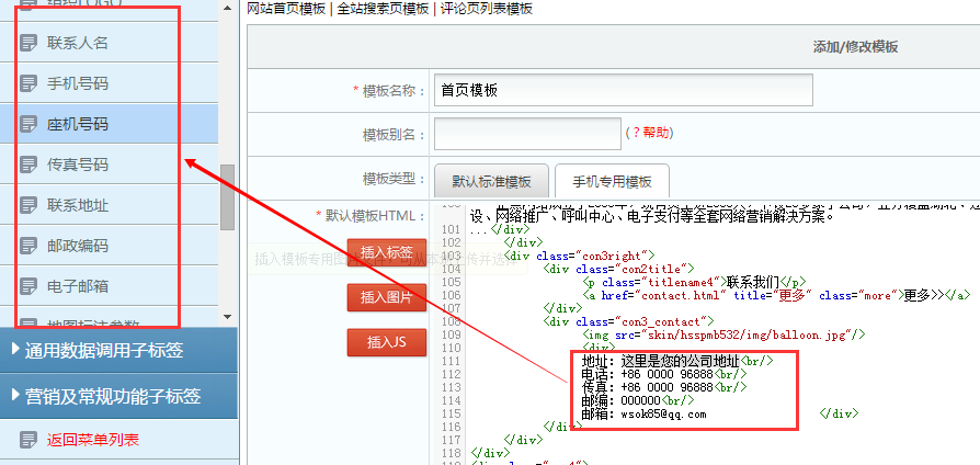 一些联系方式用子标签替换