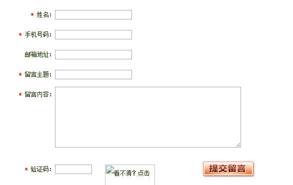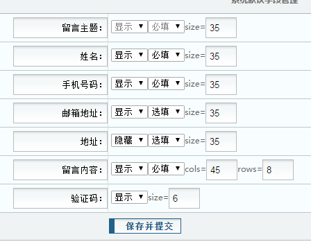 另外在频道管理——在线留言——表单字段管理中还可以管理我们的字段名称,字段是不是显示,是不是必填项,查看源文件在线留言页,我们按照这个字段改他们的名称和是否显示和是否必填项。