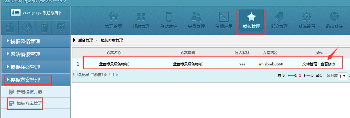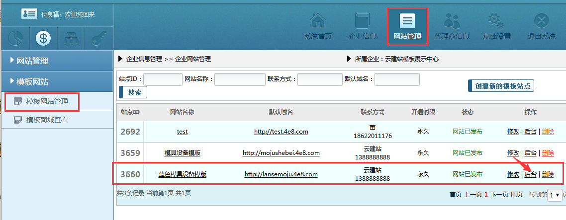 1. 代理商自制模版完成之后,首先进入到该模版后台