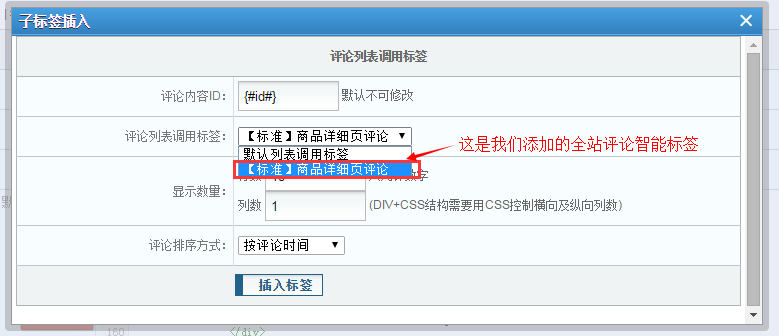 在调用的时候,插入标签—模板或标签专属子标签—评论内容调用,然后插入评论表单调用