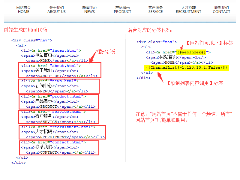 【频道列表内容调用】可以配合【频道/栏目列表标签】,指定相应的生成参数,来生成任意循环格式的频道导航,用于弥补“频道导航调用”标签的结构单一,实现更复杂的频道导航调用,该标签可以和“一级栏目列表调用”标签以及“自定列表内容调用”嵌套使用,实现嵌套循环。该标签属于带参数函数标签。