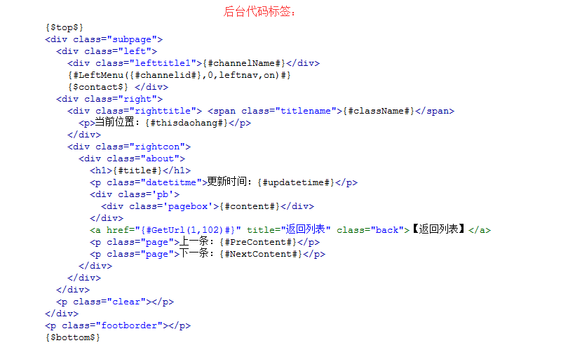将html页面中能够替换成标签的部分全部通过【插入标签】完成替换后,我们得到了最终的后台标签代码,如图: