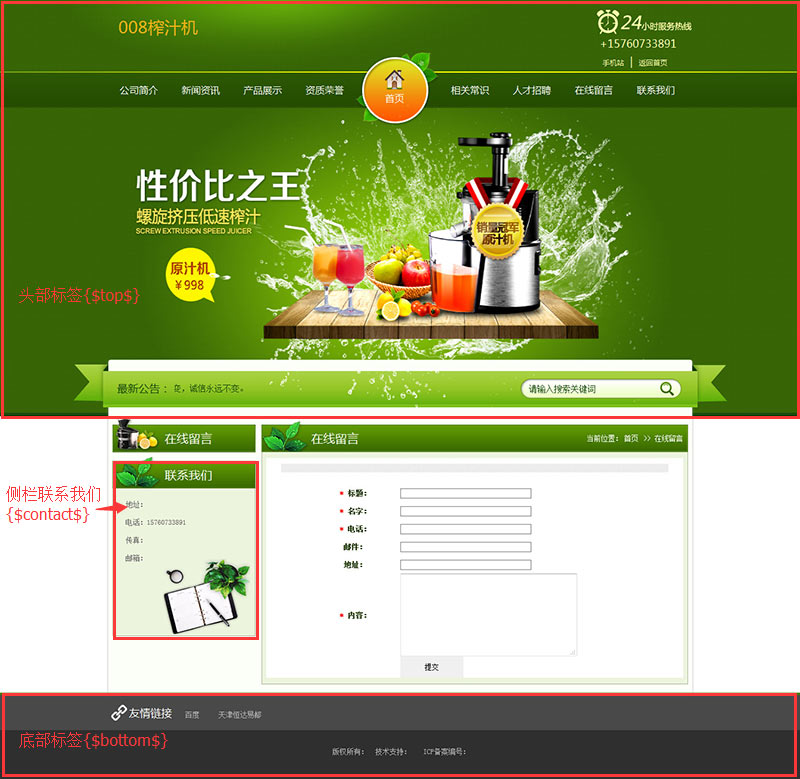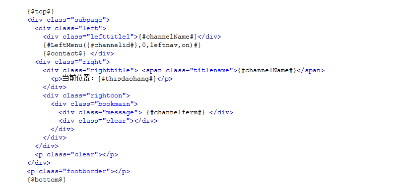 分析图中结构,我们可以把页面中的三个部分制作成【静态标签】方便管理, 关于【静态标签】的制作,在首页模板的制作中已经介绍过了,这里就不在介绍。